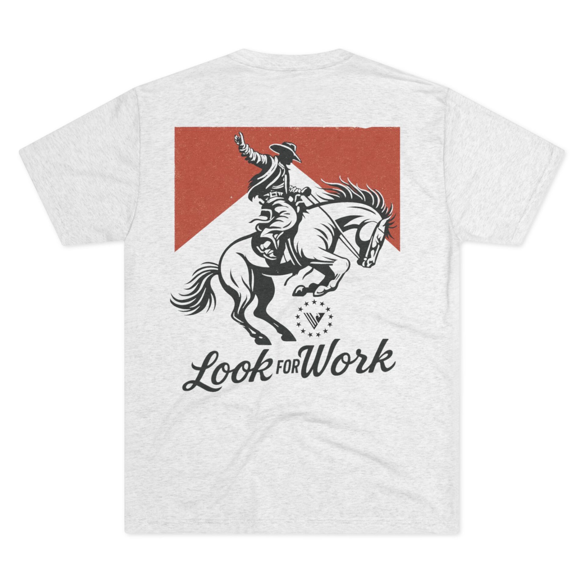 Ride with grit and style. This Look For Work Cowboy design features a bold, vintage-inspired graphic of a cowboy holding tight on a bucking bronco, framed by a rugged red backdrop. Printed on a soft, durable triblend fabric, it delivers the perfect balance of comfort, stretch, and toughness—built for long days in the arena, the gym, or out chasing goals.