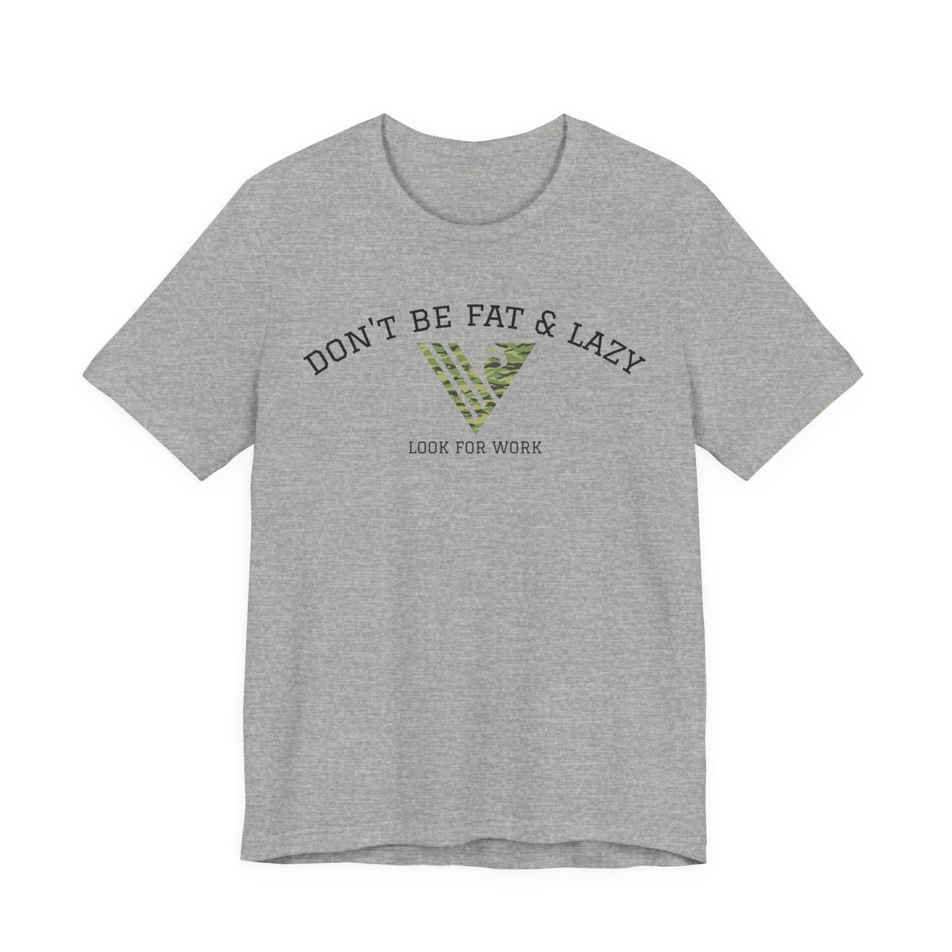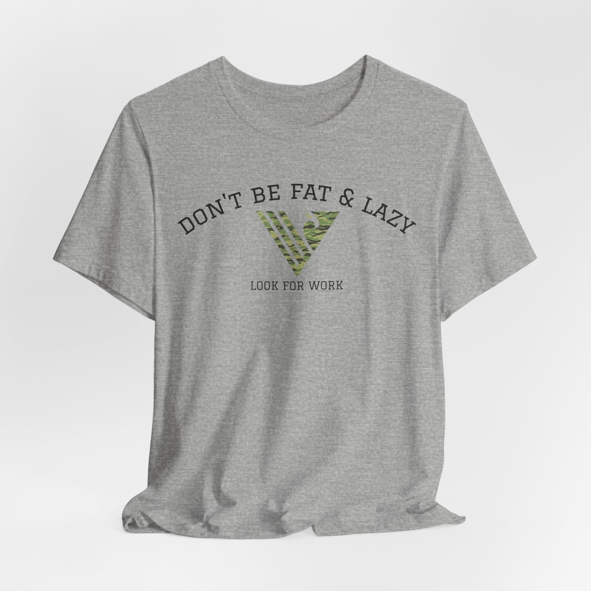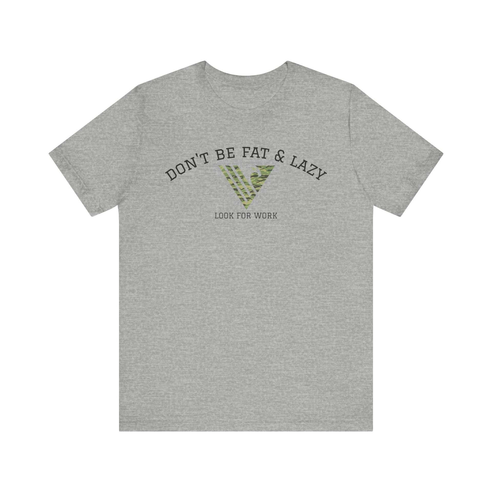 “Don’t be fat and lazy” isn’t about appearance — it’s about discipline, movement, and refusing to settle. It’s a reminder that comfort kills growth. Every time you throw this on, you’re choosing the harder path — the path of accountability, work ethic, and self-respect.